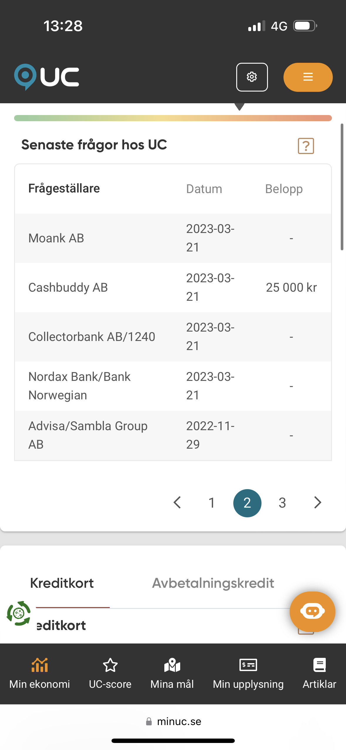 Det kan ibland förekomma att du får flera meddelanden om att en kreditupplysning har tagits, men det registreras fortsatt bara en kreditupplysning hos UC.