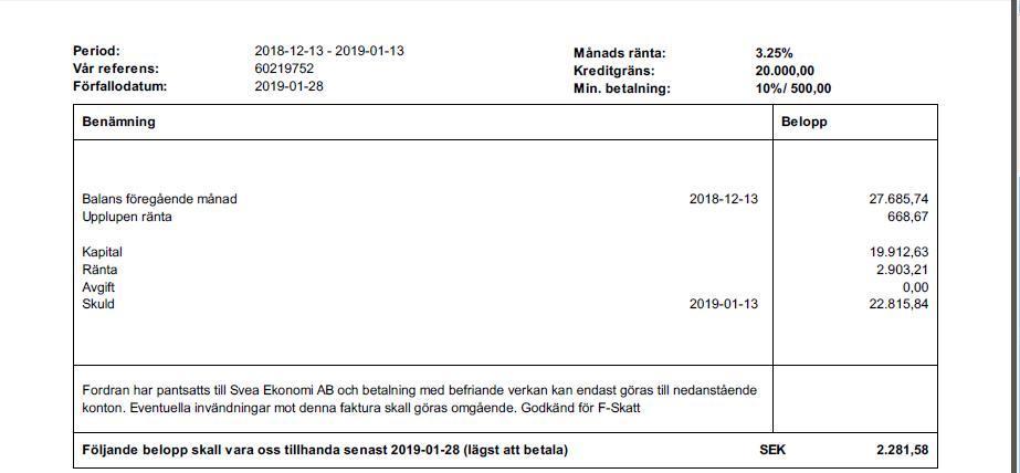 Ok, så du har legat efter. Inte så konstigt att räntan tickar på då. Verkar som du har "närmat" dig ikapp så att säga med skulden . Den senaste du redovisar verkar det iallafall inte var en sån stor ränta nu. Så om du nu skulle betala in mer än vad räntan ligger på så ska ju ändå skulden minska. En regel är ju att försöka betala in mer än vad minimum inbetalning står på. Då kommer man fortare ikapp. Plus att räntan minskar snabbare.