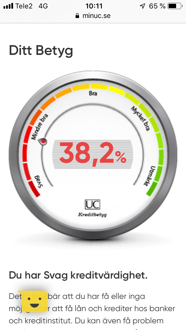 Ingen förklaring förutom följande. Jag har Amex på 40.000... det kortet har jag maxat och övertrasserat sä att det står 44.000 med andra ord katastrof för betyget.