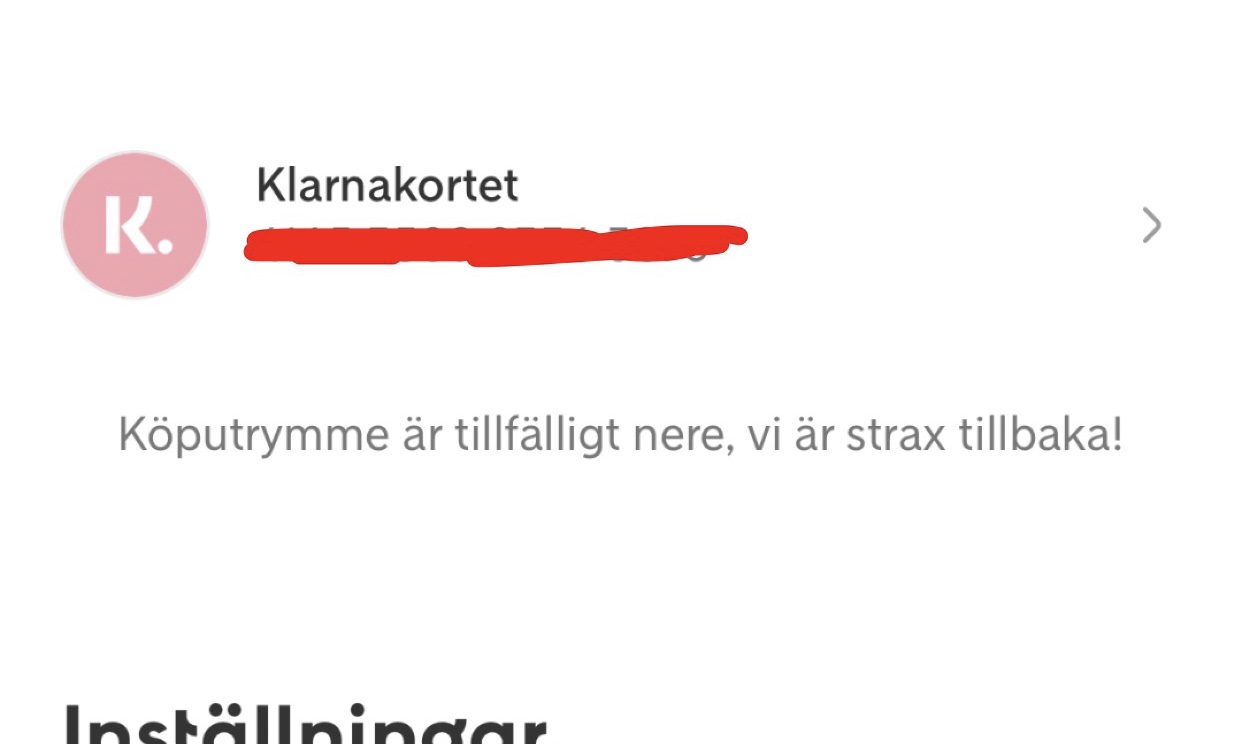 Haha hela deras app verkar totalt överbelastad! Jag har chattat med dom typ 5 gånger de senaste 3 dagarna.Ska någon av oss ta en för laget o skriva i chatten o fråga? :’) hur hittar du den rutan? Hela klarna har ju kraschat tydligen haha