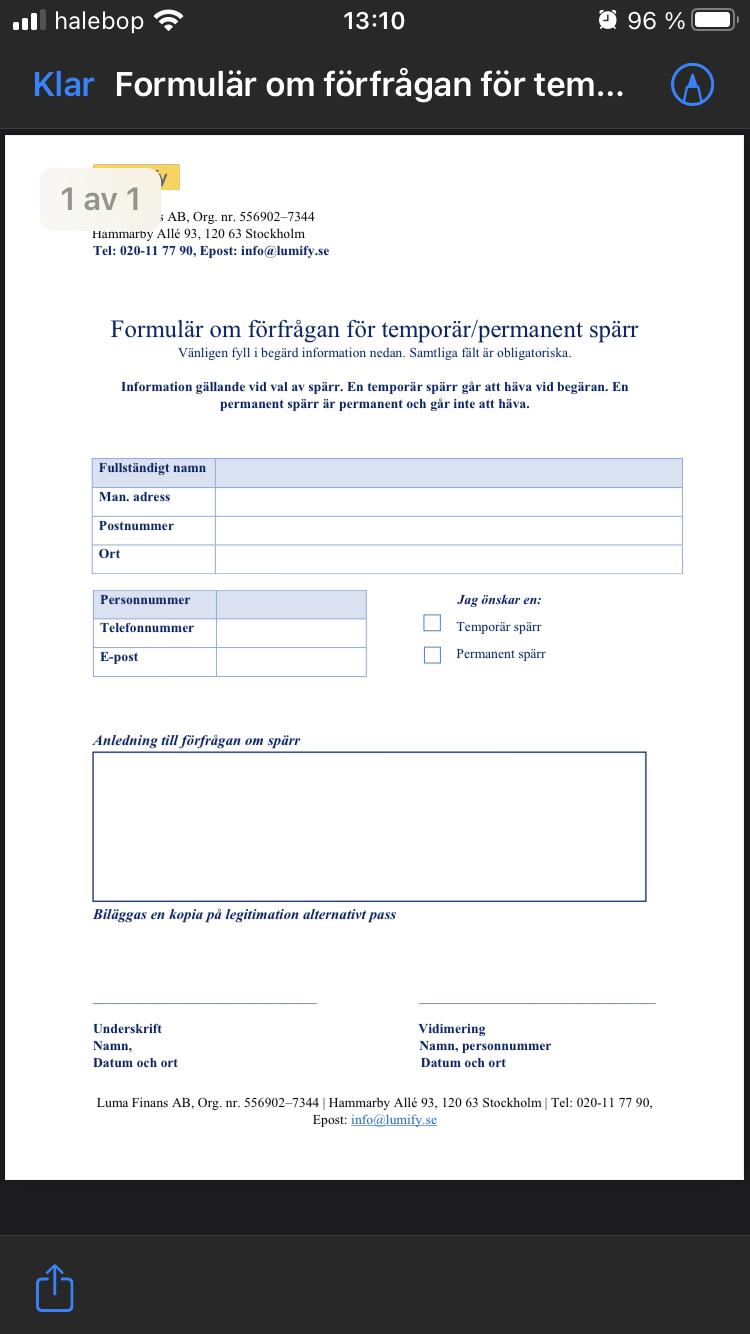 Måste tydligen fylla i bifogad blankett. Jag känner mig inte bekväm med att bifoga ID, resterande är ok.