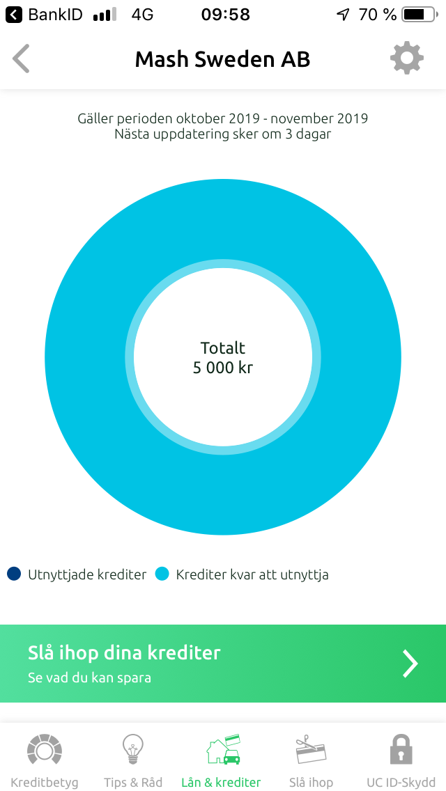Märkligt hur Kreddy kan va snabbare än UC sjäva, inatt försvann en löst kredit på Kreddy å mitt betyg bättrades fr 2,5 till 2,3 men på min UC har ja fortfarande 2,5 och krediten i fråga syns än. Kreddy uppdateras om 3 dagar står det oxå.. Men bevisligen uppdateras Kreddy oftare.