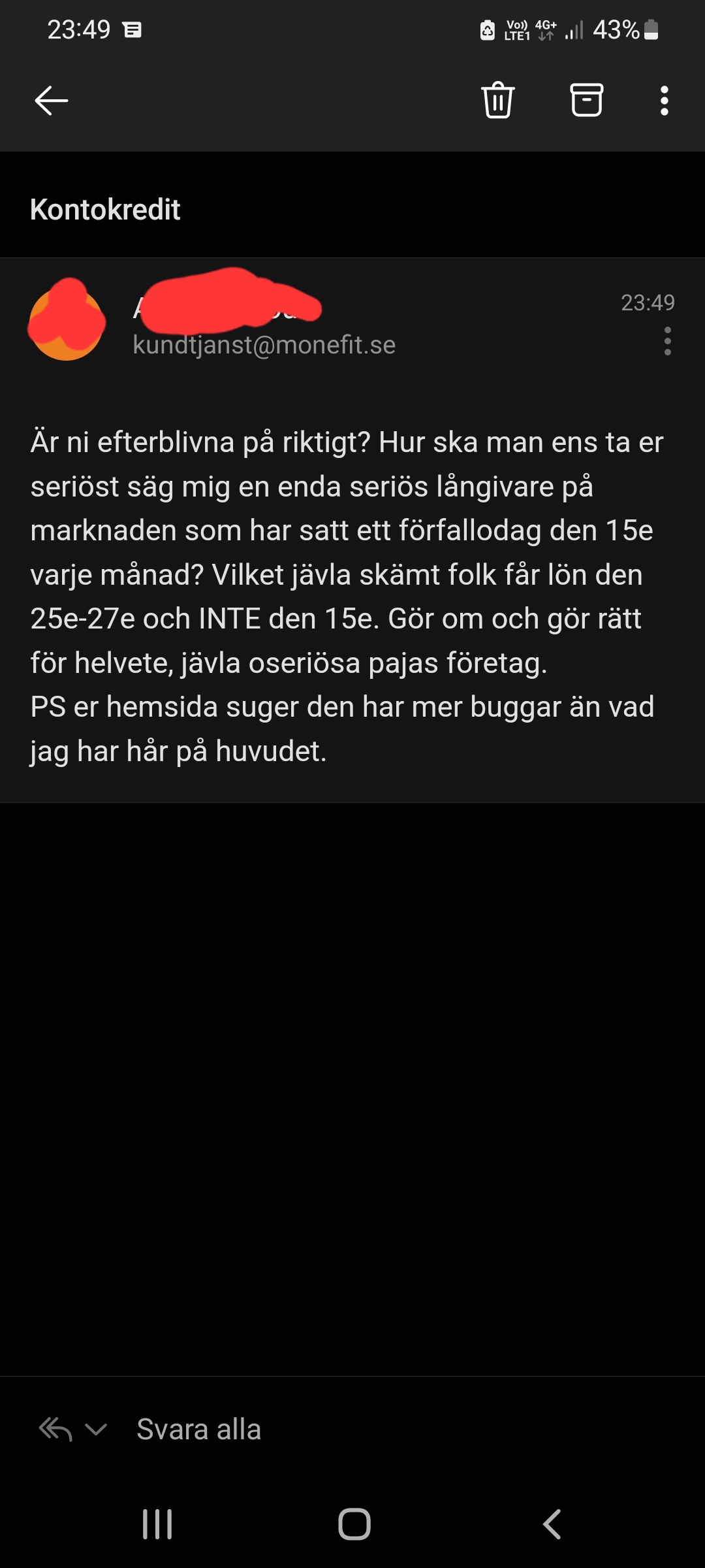?Det är absolut marknadens sämsta långivare inte nog med att dom tar en ockerränta utöver det vanliga så försöker dom även tjäna pengar på förseningsavgifter med tanke på att man sätter en förfallodag den 15e varje månad. Riktigt skojarföretag som gör allt för rinuera dig till max