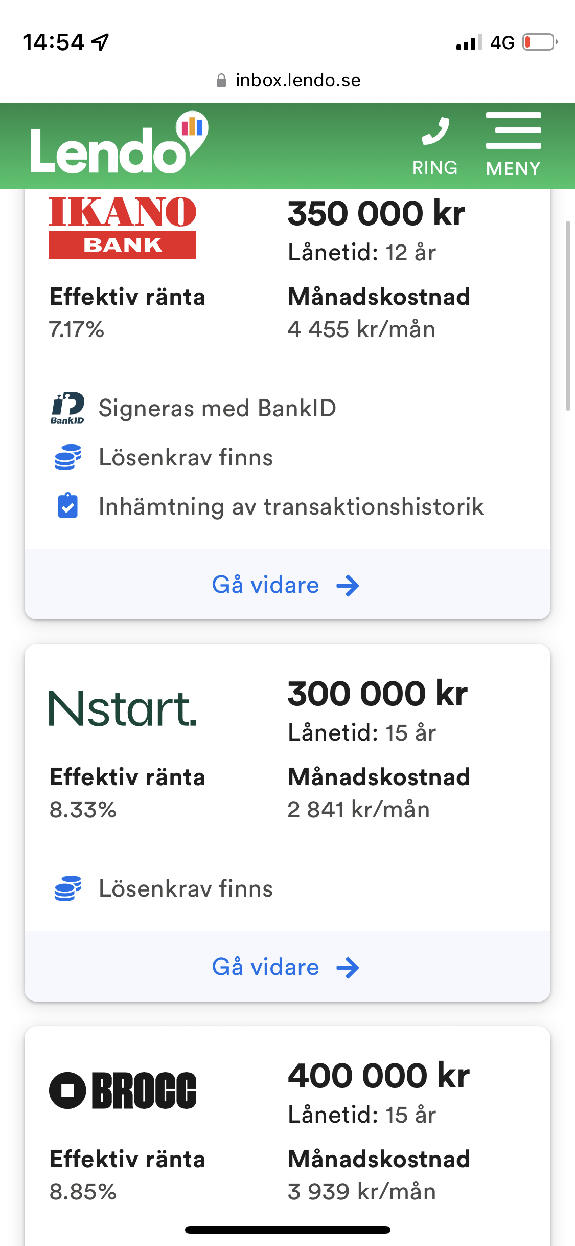 Lösenkrav kan komma oavsett summa. Jag sökte 600k på 15 år, fick 3 erbjudanden. Ringde Advisa och bad dem söka igen på samma upplysning 350k på 12 år och fick tre erbjudanden till. Så tänk på det om du söker 500k att du kan ringa Lendo eller vem du kör hos och be dem söka igen på lägre belopp samma upplysning