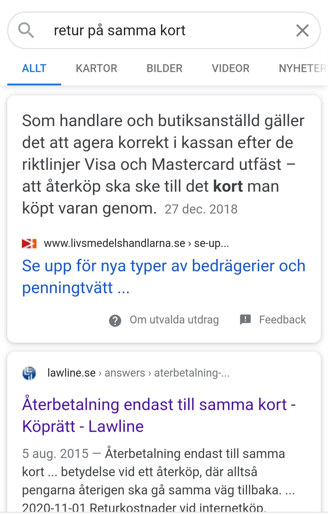 Som allmän regel överför vi pengarna till det kort som varan betalades med. Du kan även få pengarna utbetalda till ett annat kort eller bankkonto