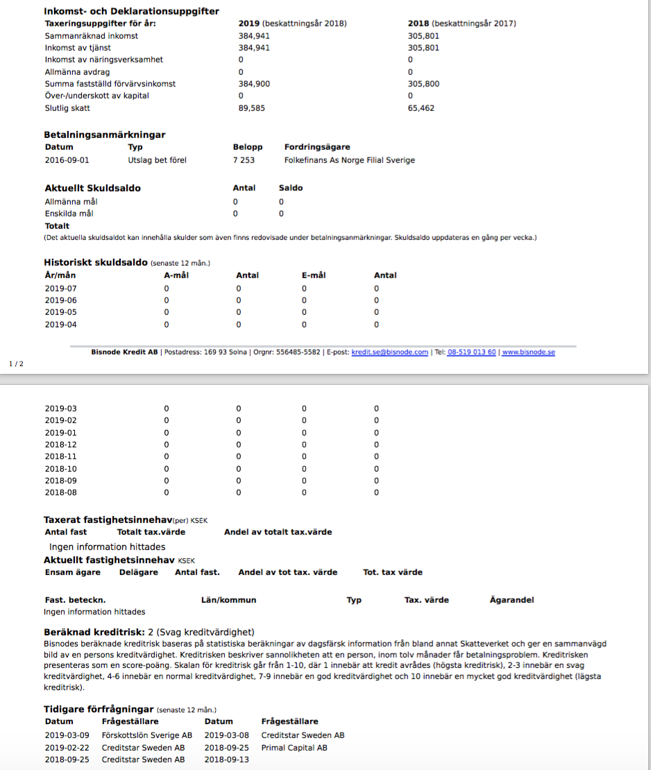 jag har också 2 i bisnodebetyg men blev nekad av slantar nu. Jag har dessutom ingen anmärkning. Slantar säger att ”det kan ej stämma att någon med bisnode 2 blivit godkänd”...